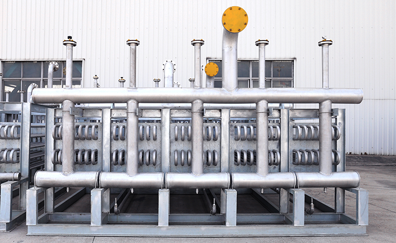 以天然氣、蒸汽或熱水為熱源加熱液態氣體(如液氮、液氧、液化石油氣、液化天然氣、液化二氧化碳)使之轉化為氣態的設備。