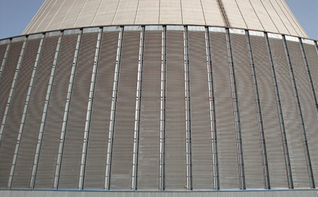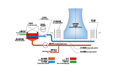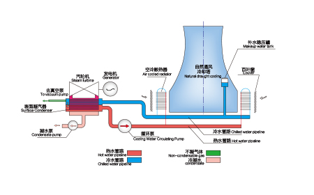 間接空冷系統的凝汽器可采用混合式或表面式凝汽器。間接空冷塔大多采用自然通風冷卻塔,可選用混凝土塔體或鋼結構塔體。