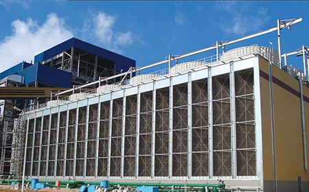 干冷管束垂直布置在塔兩側,塔上設置干冷管束檢修平臺,方便日常檢修維護。
