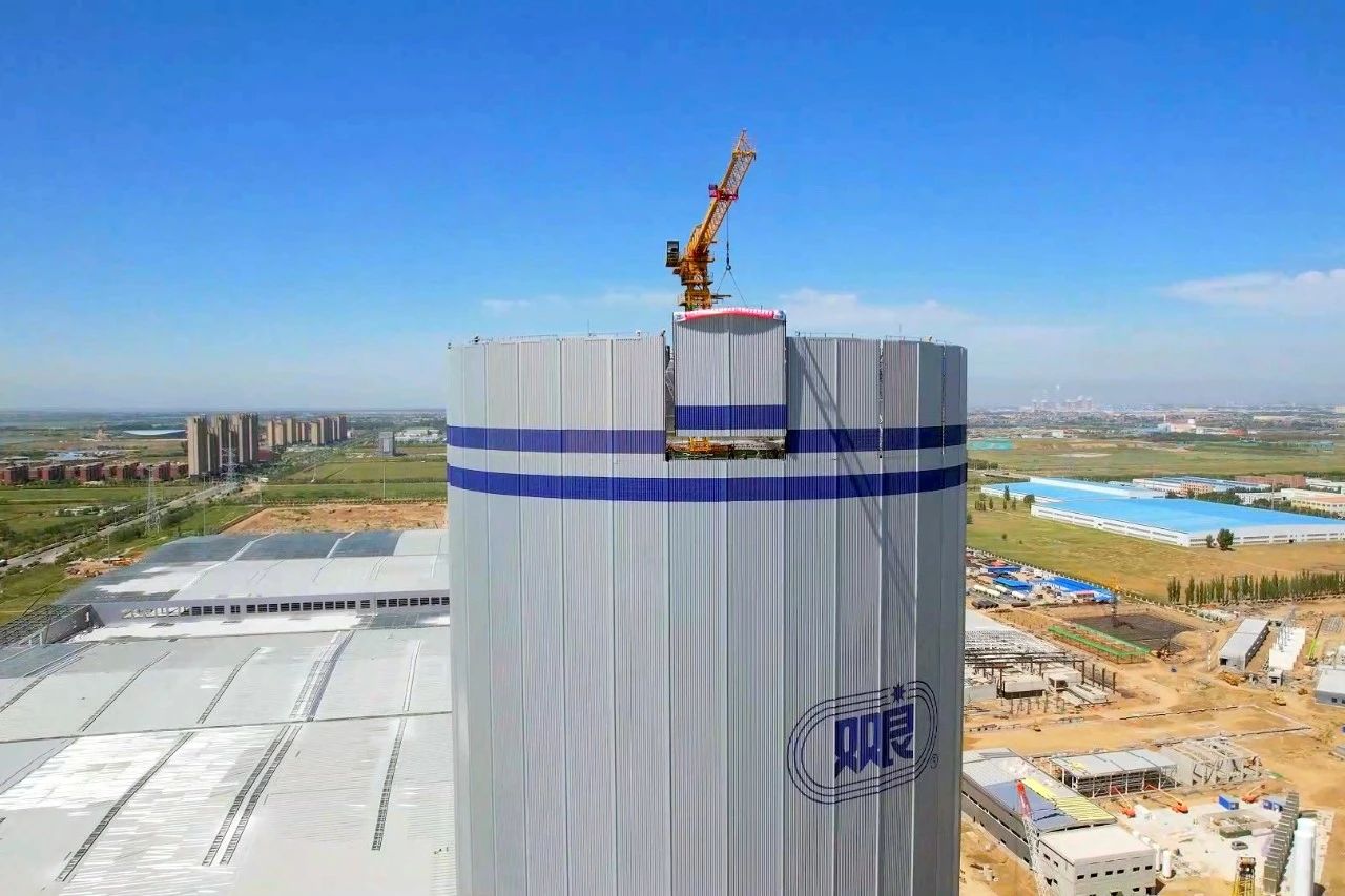 8月22日,在內(nèi)蒙古包頭的雙良新能源光伏產(chǎn)業(yè)園三期50GW單晶硅項(xiàng)目(簡稱“三期項(xiàng)目”)建設(shè)現(xiàn)場,隨著頂部最后一塊蒙皮吊裝完成鋼塔合攏,三期項(xiàng)目1號、2號全鋼結(jié)構(gòu)間冷塔順利封頂,為三期項(xiàng)目早日投產(chǎn)奠定了堅實(shí)的基礎(chǔ)。