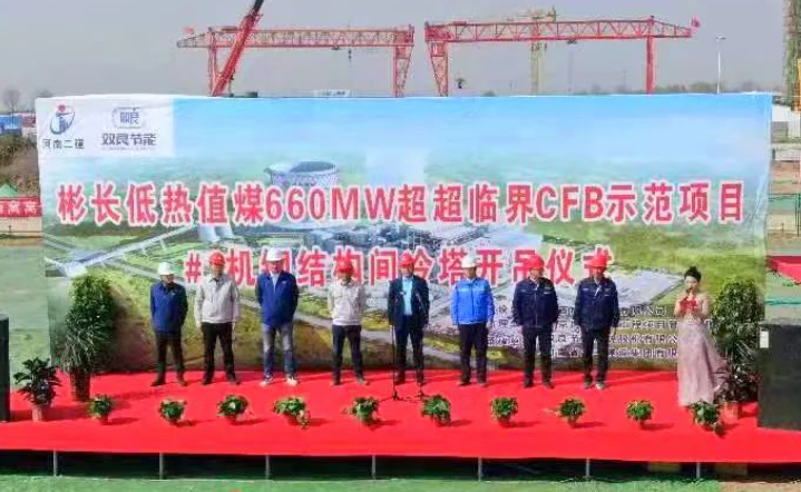 4月12日,在陜西省彬州市新民鎮彬長電廠項目現場,彬長低熱值煤660MW超超臨界CFB示范工程1號機組間冷塔順利完成首吊,該間冷塔為煙塔合一鋼結構間冷塔,項目由雙良節能EPC總承包,工