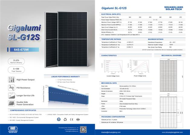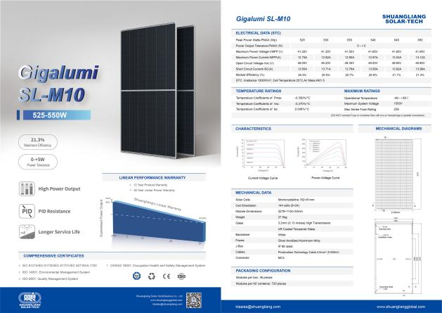 雙良Gigalumi超級光能組件產自雙良全自動化、智能化生產車間,依托雙良光伏產業鏈,從硅料端開始嚴格控制產品質量,首年及逐年衰減值更低。采用無損切割電池方式,降低隱裂風險,產品通過嚴格條件下的抗PID測試保證,生產工藝品質檢測配備AI識別系統。具備雙面雙玻組件的工藝,兼容182和210光伏電池尺寸,以及54/60/66/72/78片版型組件制造。雙良打通從研發、制造及應用環節,加速高效光伏組件的產業化和諧發展。
